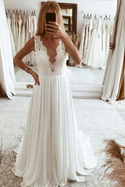 Linia A Koronka Głęboki dekolt w serek Wiosna Sukienka ślubneZakochałam się w tej sukni od pierwszego wejrzenia. Byłam trochę sceptyczna, kupując suknię ślubną online, ale dzięki recenzjom zdecydowałam się! Zebrałam mnóstwo komplementów na jej temat.